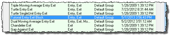 •Look in the block list on the right side of the screen and scroll the list until you find the Entry Exit blox and see the "Tutorial Entry Exit Block" we created in the earlier lesson sections. When you find our tutorial block, right-click on it so that is will appear in the system section list area.