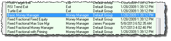 •Next locate the "Basic Money Manager" provided with Trading Blox. Click on it and then right-click the it so that is it also placed into the system listing: