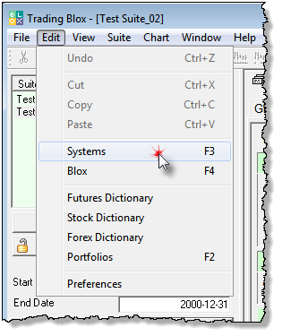 •To get started with building our first system we must enter into the System Editor by selecting System menu item under the main screen's Edit menu, or by pressing F3.