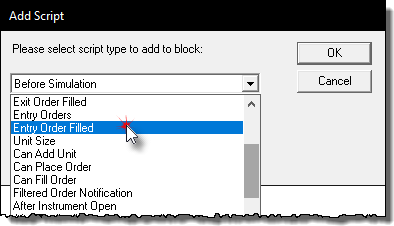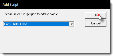 When the script section to add is selected, the Add Script dialog closes the list of Script Sections available so the user can click on the OK button so the new script section will appear.