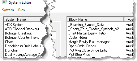 Once a blox is created it can be added to a system module. Available blox are listed in the System Editor's Block Name area.