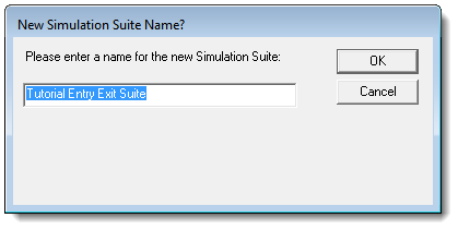 •A new simulation "Suite Name" dialog window will appear. Remove the name shown, and enter "Tutorial Entry Exit Suite" and then press the "OK" button: