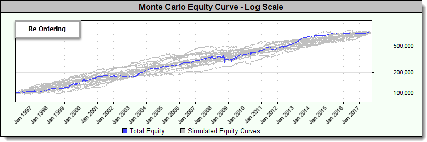 In each case, the new equity curves are generated by taking portions of the actual test equity curve and changing the order in how they happened.
