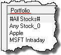 To change the instruments assigned to a portfolio name, select the portfolio first, and then change the selection of symbols. All changes to all portfolios will be preserved when the editor is closed using the Portfolio Editor's OK button. Portfolio changes will not be saved when the Portfolio Editor's Cancel button is used to close the editor. |