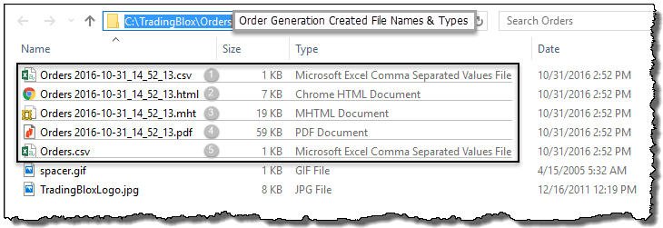 This control will display Trading Blox specified orders folder dialog so that current and earlier order files can be accessed.