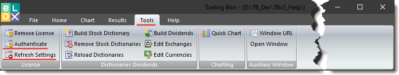 To display the missing window, follow these instructions: Holding-Down Shift-Key while selecting dialog menu item like System or Blox Editor, Trading Blox will reset the dialog window location information so it will appear within the boundaries of the display screen. This approach is more useful when a window is lost than the old way of clicking on the Main-Screen's Tool section and clicking on the Reset Settings. |
