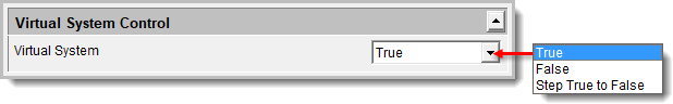 When Virtual System is set to TRUE, all the test results from the system will show nothing. When set to FALSE, the test of the system will have the normal results that would have happened had the Virtual System blox not been attached to the system.