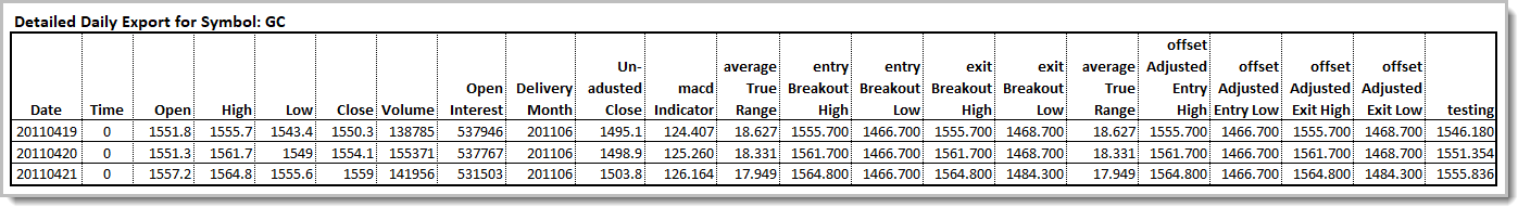 When used with an instrument object, it will export to a file the value for each series and indicator for that instrument, for each day in the test.