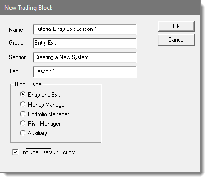 •Name this new Block the "Tutorial Entry Exit Lesson 1" by typing in the blox name in the Name field.